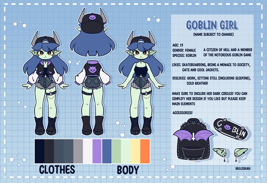 • I will follow the colours on your ref sheet. You may change the colours ONCE if I have followed the ref, after which they will be set.